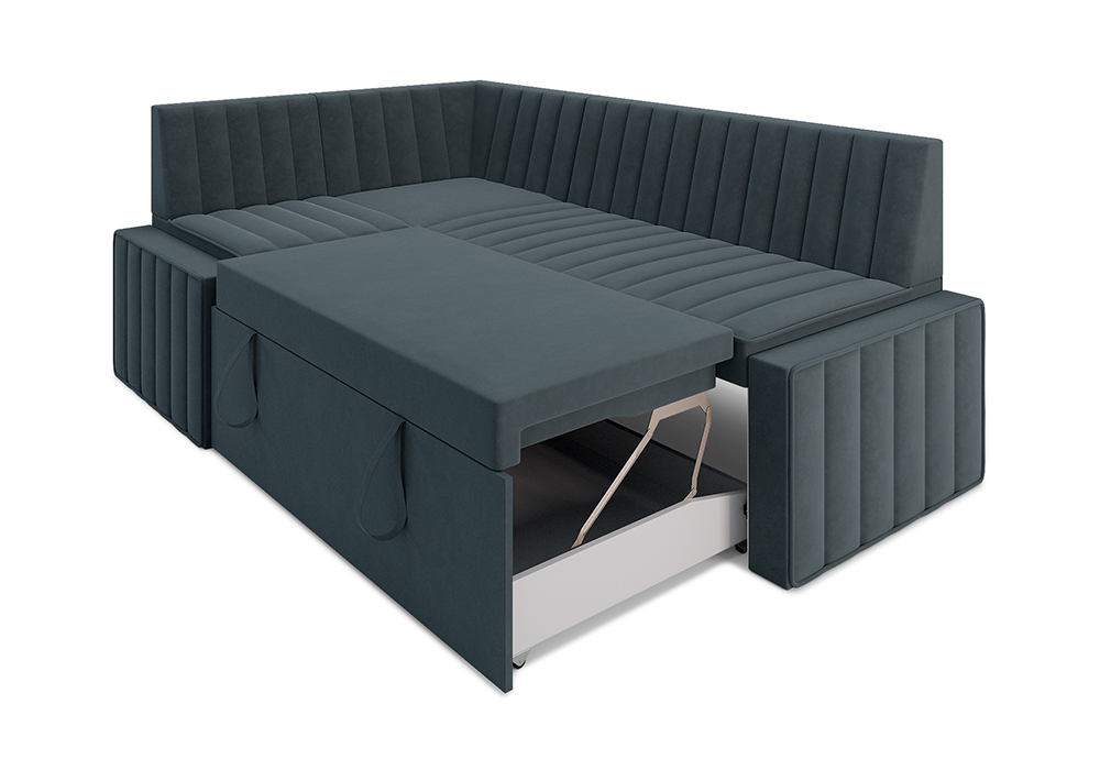 —Кухонный угловой диван дельфин Вермут велюр серо-синий